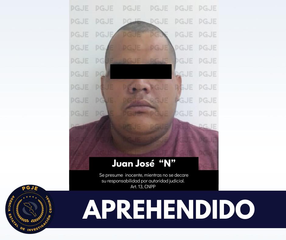 La Procuraduría General de Justicia del Estado (PGJE) informa que la mañana de este jueves 5 del mes en curso agentes Estatales de Investigación Criminal, cumplimentaron Orden de Aprehensión en contra de Juan José “N” acusado de homicidio en Cabo San Lucas.