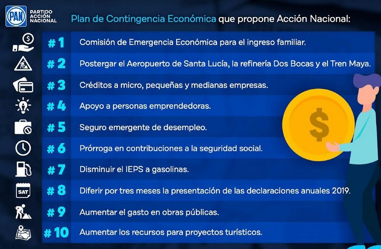 En ese contexto, el Partido Acción Nacional propone las siguientes medidas económicas de adopción urgente:
