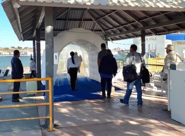 La Administración Portuaria Integral de Baja California Sur (APIBCS), por medio de su director José López Soto anunció que ya está en operación el túnel sanitizador que se adquirió, junto con la empresa naviera Baja Ferries, a fin de redoblar las medidas de seguridad que ya se tienen en el Puerto de Pichilingue para evitar la propagación de contagios por Covid-19.
