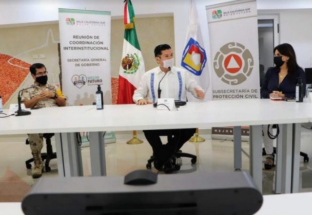 El secretario General de Gobierno, Álvaro De la Peña Angulo, encabezó acompañado de la presidenta de Los Cabos, Armida Castro Guzmán, el comandante de la Tercera Zona Militar, Raúl Gámez Segovia, así como representantes de la Secretaría de Marina, Guardia Nacional y Protección Civil estatal y del municipio, la reunión virtual del Sistema Nacional de Protección Civil, para el acto inaugural de la temporada de lluvias y ciclones tropicales 2020.