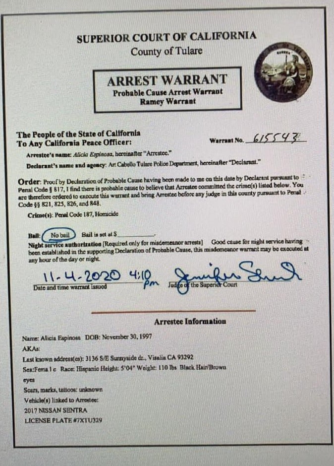 Lo anterior fue corroborado, ya que fue presentada en barandilla donde se tuvo conocimiento de la orden de arresto vigente de un juez del estado de California.
