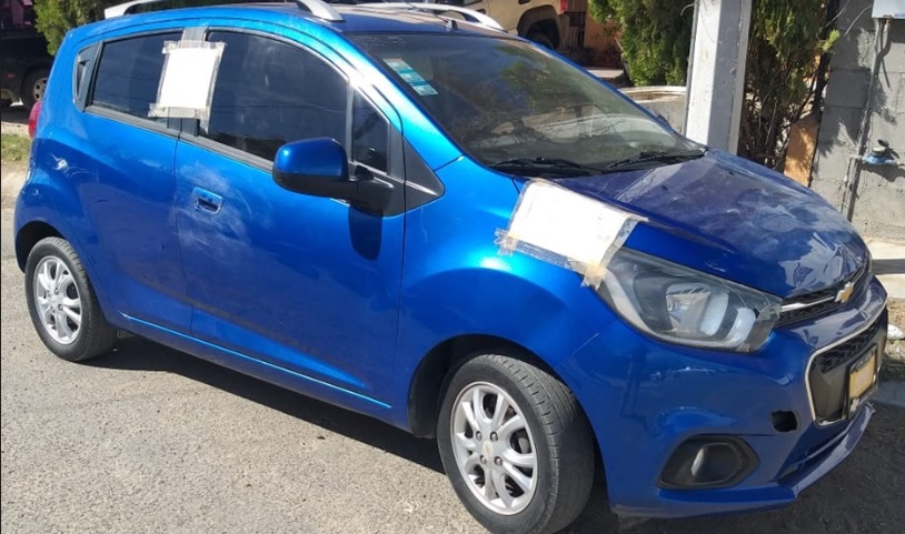 En el fraccionamiento Flamingos, en Cabo San Lucas, se logró la localización y aseguramiento de un sedán marca Chevrolet, línea Veat C, modelo 2018, color azul, el cual se encuentra relacionado en una carpeta de investigación por el delito de robo de vehículo en la ciudad de La Paz.