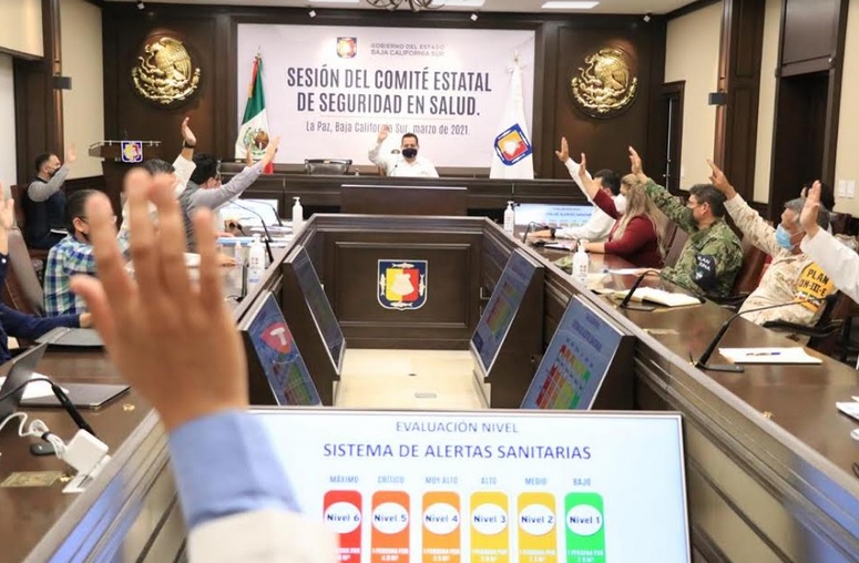 Durante la nonagésima tercera reunión del Comité Estatal de Seguridad en Salud, se votó de manera unánime que Baja California Sur permanezca en el nivel 3 del sistema estatal de alertas sanitarias además de acordar prohibir eventos religiosos y de culto del día primero al 03 de abril del presente año. “Las decisiones que emanan de este Comité son responsables y consensuadas, pues los representantes del sector y autoridades de gobierno coincidimos en que el cuidado de la salud es el único objetivo”, precisó el gobernador Carlos Mendoza Davis.