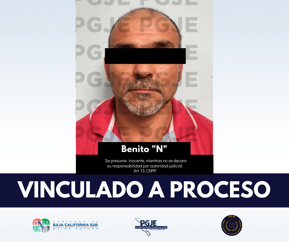 El lunes 29 del mes en curso, en la continuación de la audiencia inicial por orden de aprehensión que se realizó en el Centro de Justicia de Ciudad Constitución, el agente del Ministerio Público de Fiscalía Especializada en la Investigación de Delitos de Desaparición Forzada de Personas, Desaparición Cometida por Particulares y Delitos Vinculados, de la Procuraduría General de Justicia del Estado, PGJE, obtuvo del Juez de Control el auto de vinculación a proceso y la prisión preventiva contra Benito “N”, acusado por el delito de secuestro, en su modalidad de hacer daño a la persona privada de su libertad.