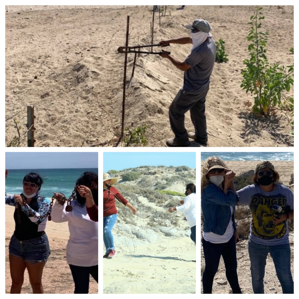 En el camino, se les unieron surfistas que recién regresaban de una playa que fue cerrada al sur de Cabo Pulmo y contentos acompañaron al grupo para abrir los accesos, tanto en la zona de San Luis, Destiladeras y La Fortuna, donde incluso colocaron cadenas, que también fueron retiradas con mucho esfuerzo.