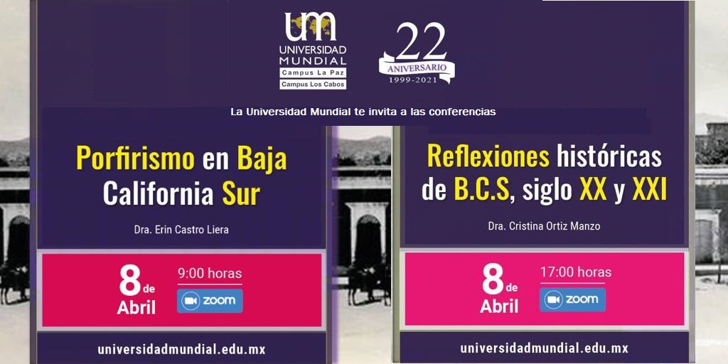La Paz, B.C.S.- Con el propósito de contribuir al conocimiento de la historia de Baja California Sur, la Universidad Mundial implementó una serie de conferencias que continuarán el próximo jueves 8 de abril.