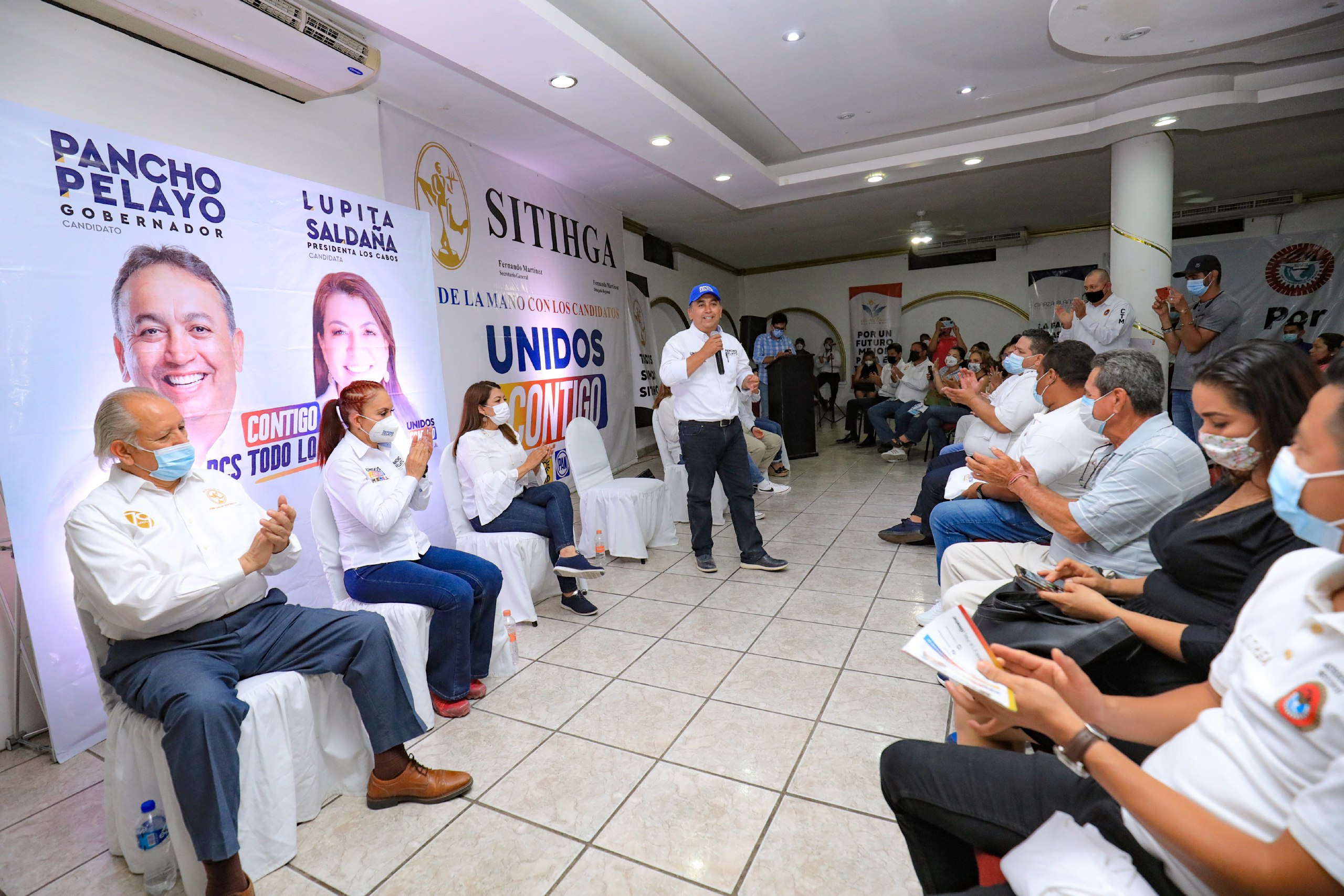 “Ustedes con su trabajo han hecho posible que la economía de este Estado se mueva desde aquí. El rostro de Los Cabos es su gente”, dijo el candidato a la gubernatura, Pancho Pelayo Covarrubias durante encuentro con integrantes del Sindicato de Trabajadores de la Industria Hotelera y Gastronómica (SITIHGA) de Los Cabos, quienes manifestaron su apoyo por el proyecto político “Unidos Contigo”.