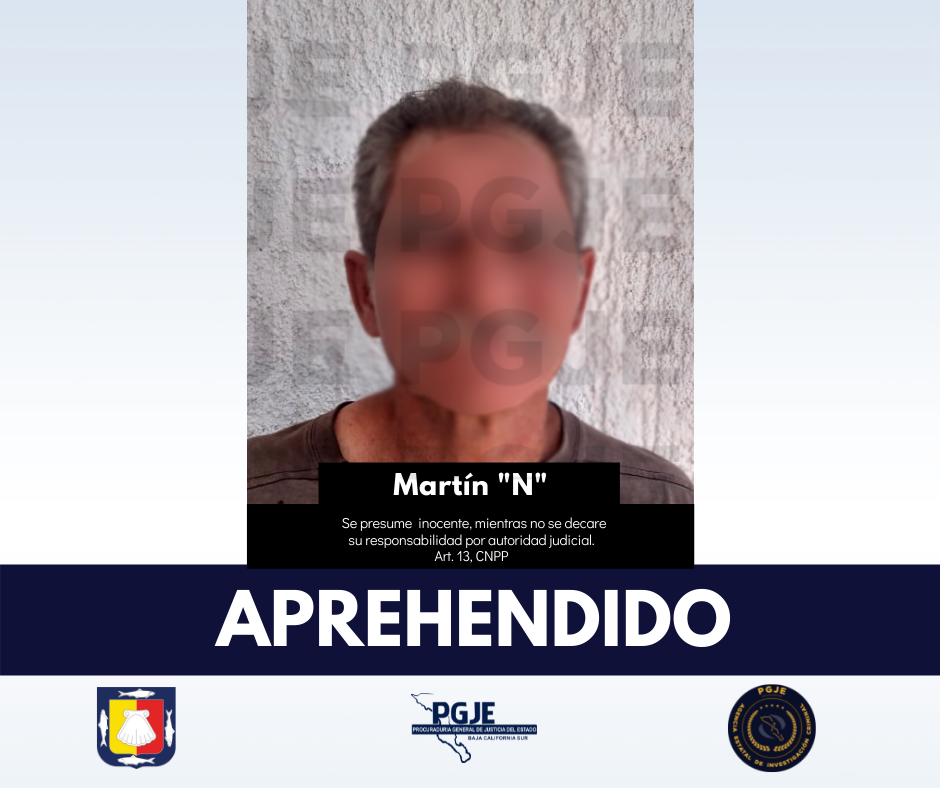 Agentes Estatales de Investigación Criminal (AEIC), adscritos a la Unidad de Mandamientos Judiciales, cumplimentaron la orden de aprehensión contra el individuo la tarde del lunes 31 en Mulegé Pueblo.