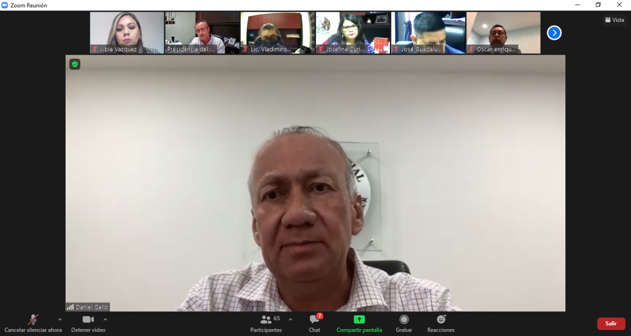Ante el incremento de los contagios y el regreso al nivel 5 naranja crítico en el semáforo epidemiológico, acordado por el Comité de Seguridad en Salud en la entidad, el Magistrado Daniel Gallo Rodríguez, Presidente del Honorable Tribunal Superior de Justicia y del Consejo de la Judicatura en el Estado, sostuvo una reunión con los titulares de los órganos jurisdiccionales y administrativos del Poder Judicial en el Estado.