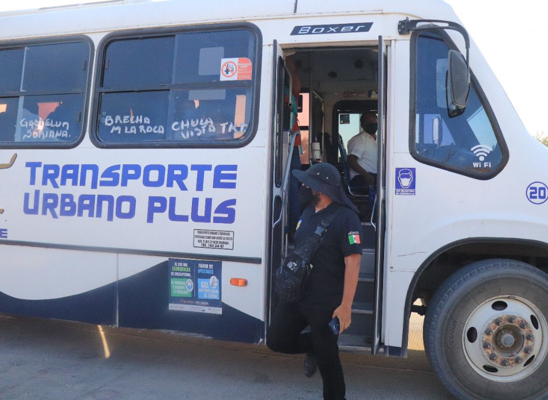 Buscando contrarrestar los efectos de la pandemia de COVID-19 en Los Cabos, de manera cotidiana colaboradores de la Coordinación de Transporte Municipal en la delegación de Cabo San Lucas llevan a cabo recorridos de supervisión en el transporte público, con la finalidad de hacer respetar las medidas de higiene y sana distancia, así como de tener un control en el número de pasajeros que utilizan los camiones.