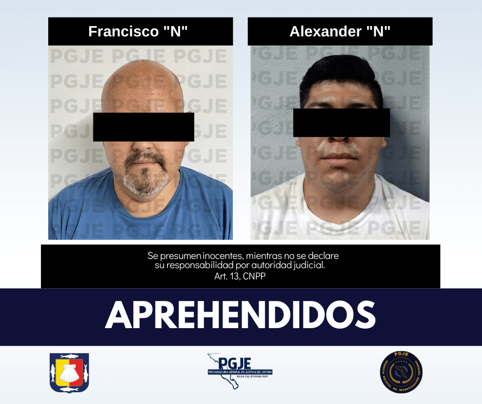En operativos efectuados en el municipio de Mulegé y Los Cabos, personal de la Procuraduría General de Justicia del Estado capturó a Francisco “N” y Uriel Alexander “N” a quienes les cumplimentaron orden de aprehensión por su probable participación, en hechos diferentes, en el delito de violación equiparada agravada.