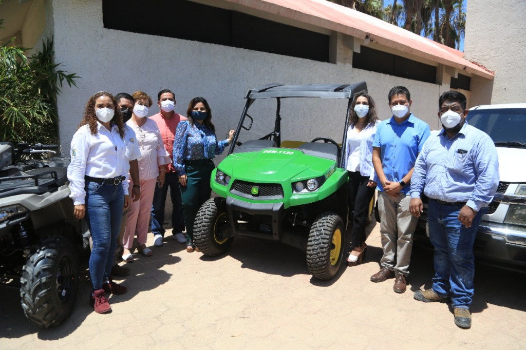 La alcaldesa de Los Cabos, Armida Casto Guzmán, hizo entrega de tres cuatrimotos todo terreno, una unidad John Deere y un pick up, -este último donado por el Instituto Municipal de Planeación a la Dirección General de Ecología y Medio Ambiente-, para fortalecer el trabajo del programa para la Protección de la Tortuga Marina, así como las acciones a favor de la Reserva Ecológica del Estero de San José de Cabo; de igual manera, hizo entrega de reconocimientos y equipo de trabajo al personal de Ecología.