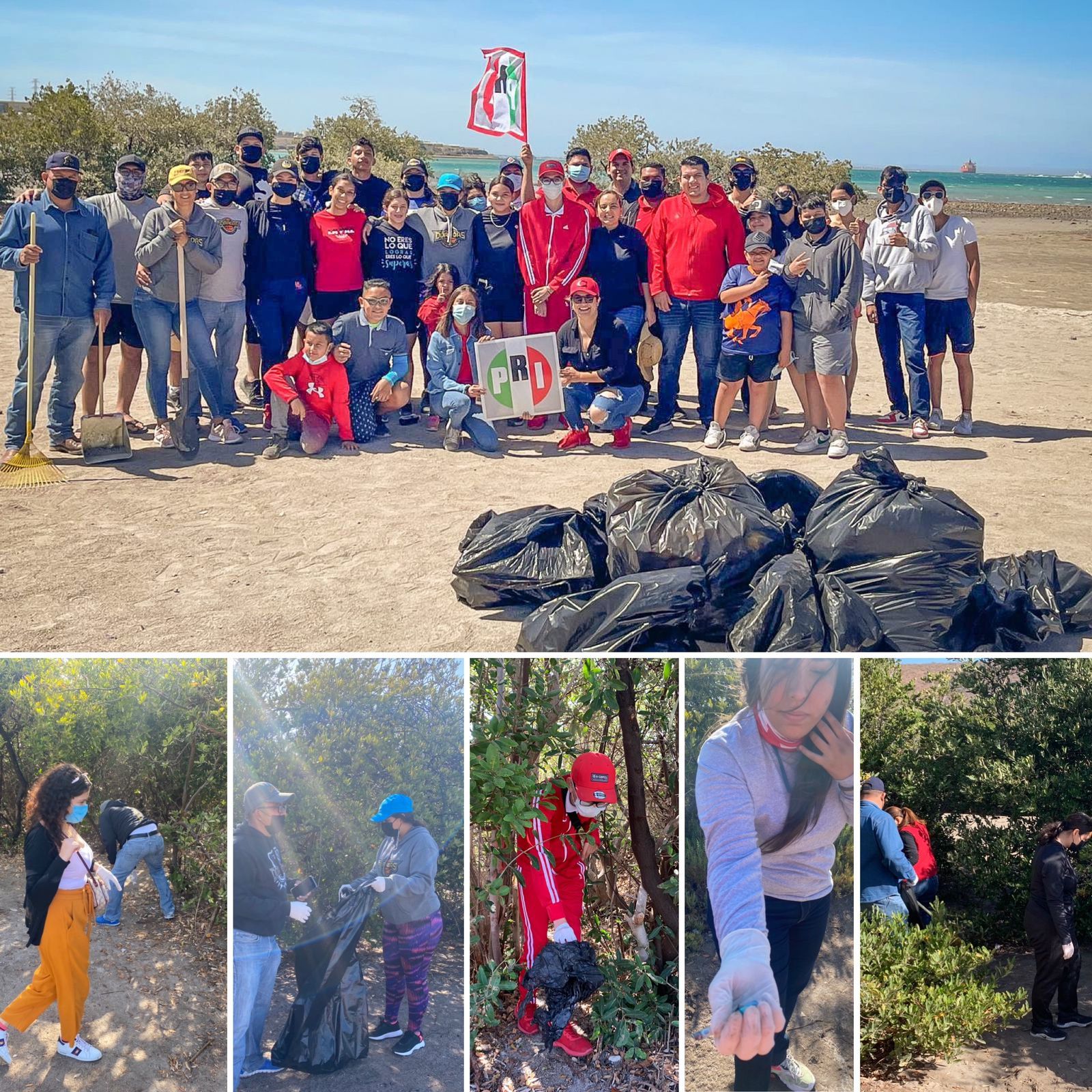 Como parte de la agenda y del programa de actividades orientadas a la defensa y mejora del medio ambiente y los recursos naturales de nuestro estado, jóvenes priistas realizan jornada de limpieza en playa y manglares de La Paz.