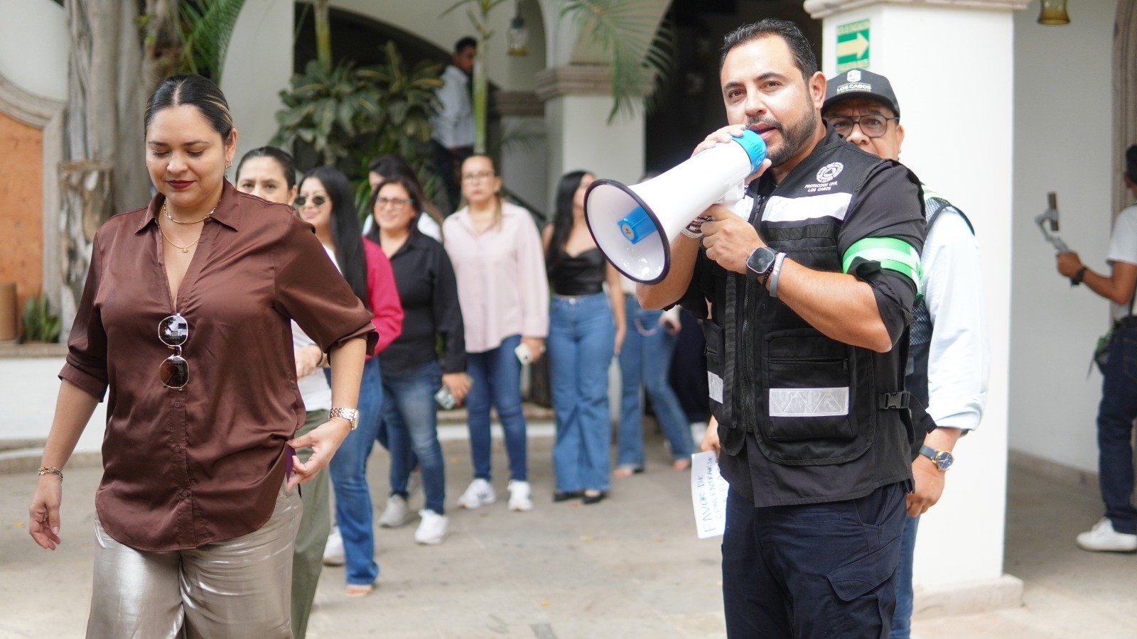 El presidente municipal del XV Ayuntamiento de Los Cabos, Christian Agúndez Gómez, participó este viernes 19 de septiembre en el Simulacro Nacional 2025 encabezando la evacuación de cientos de personas servidoras públicas que se encontraban en el Palacio Municipal, en San José del Cabo, ejercicio preventivo que se desarrolló en el marco del Día Nacional de Protección Civil.