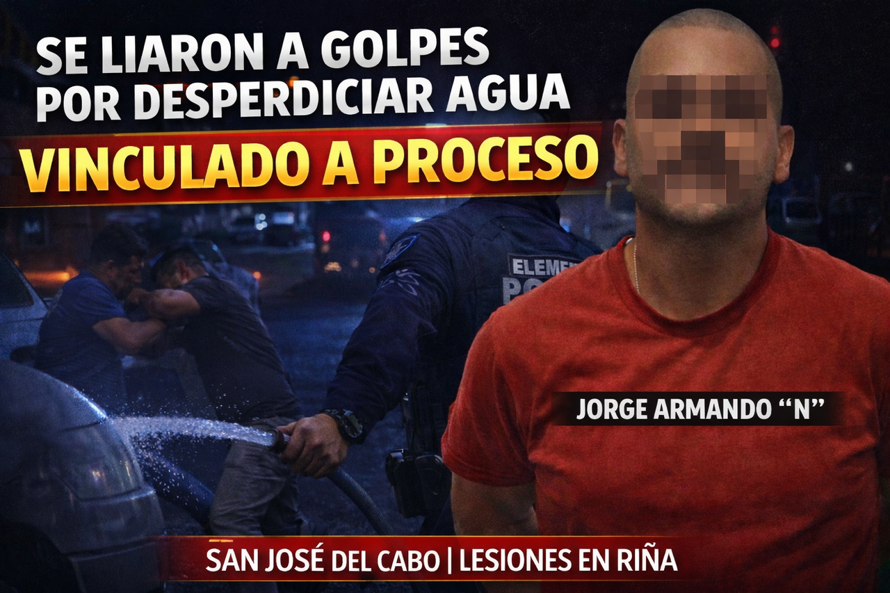 San José del Cabo (California) — Un reclamo por el uso excesivo de agua al lavar un vehículo con manguera derivó en una riña que hoy tiene consecuencias legales. La Procuraduría General de Justicia del Estado (PGJE) informó que Jorge Armando “N” fue vinculado a proceso por el delito de lesiones en riña, tras hechos ocurridos en la colonia Santa Rosa, en San José del Cabo.