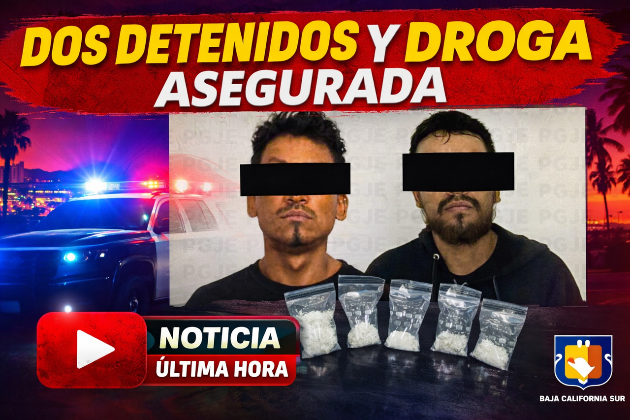 Cabo San Lucas (California) — Como parte de las acciones de investigación vinculadas a hechos delictivos de alto impacto en la región, el 10 de febrero se realizó en Cabo San Lucas una intervención que derivó en el aseguramiento de dos personas y diversas dosis de aparente narcótico.