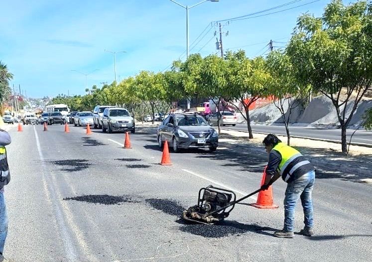 Por instrucción del presidente municipal, Christian Agúndez Gómez y bajo la supervisión del director general de Obras Públicas y Asentamientos Humanos, Christopher Enríquez González, se realizaron trabajos de bacheo en las colonias Guaymitas, Rosarito y Magisterial en San José del Cabo, así como en tramos estratégicos de la carretera Transpeninsular.