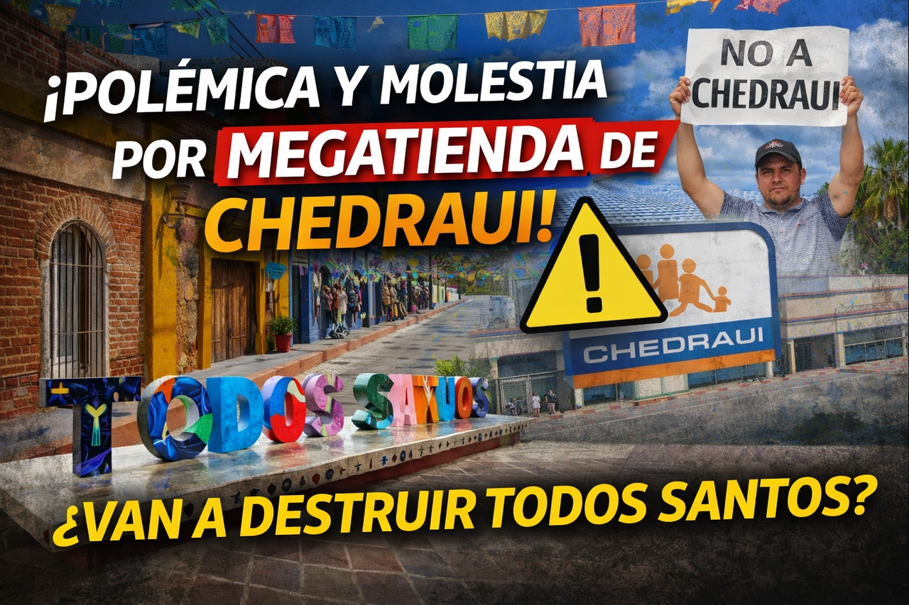 Todos Santos (California) — La posibilidad de que una megatienda de autoservicio sea construida en el corazón de Todos Santos ha encendido una fuerte polémica y un creciente descontento social. Habitantes, comerciantes y representantes comunitarios advierten que detrás del proyecto impulsado por la cadena comercial Chedraui se esconde un intento de imponer intereses corporativos por encima de la ley, la identidad del pueblo y el bienestar de la comunidad.