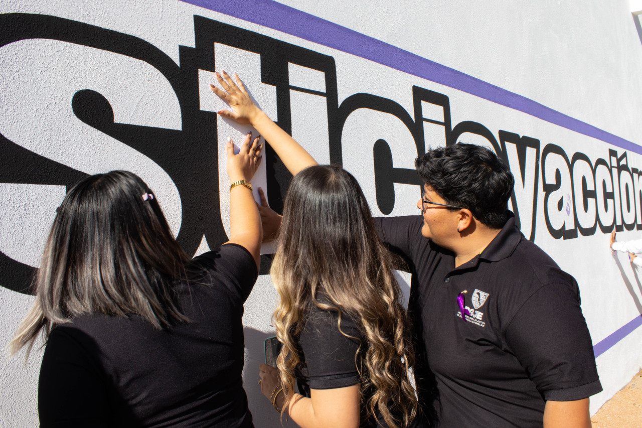 Al encabezar la actividad en la que mujeres de las distintas áreas de la institución plasmaron sus manos con pintura en un muro, sumándose a la exigencia de Derechos, Justicia y Acción por todas las mujeres y niñas, López Rodríguez, entregó un reconocimiento, por 36 años de servicio a la Química María de Jesús Bejarano Uzeta quien, además, desde enero de este año ostenta el cargo de Directora de Servicios Periciales de la PGJE, quien visiblemente emocionada agradeció la distinción y ofreció su compromiso con la institución a la que le ha dedicado toda una vida de trabajo profesional para esclarecer delitos y procurar justicia.