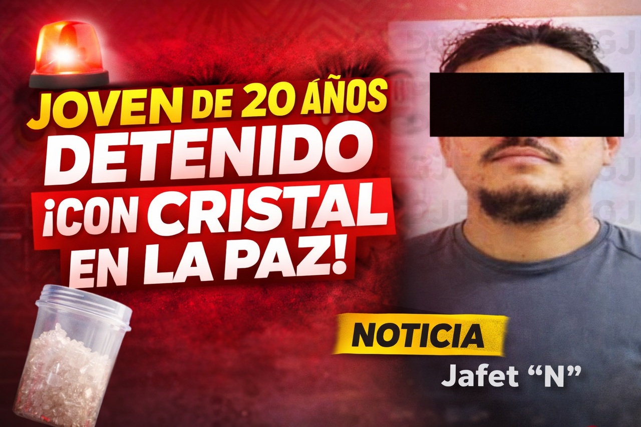 La Paz (California) — Un hombre de 20 años fue asegurado en la capital del estado luego de que agentes de investigación le encontraran entre sus pertenencias una sustancia con características similares al narcótico conocido como cristal, durante un operativo derivado de reportes ciudadanos y trabajos de inteligencia.