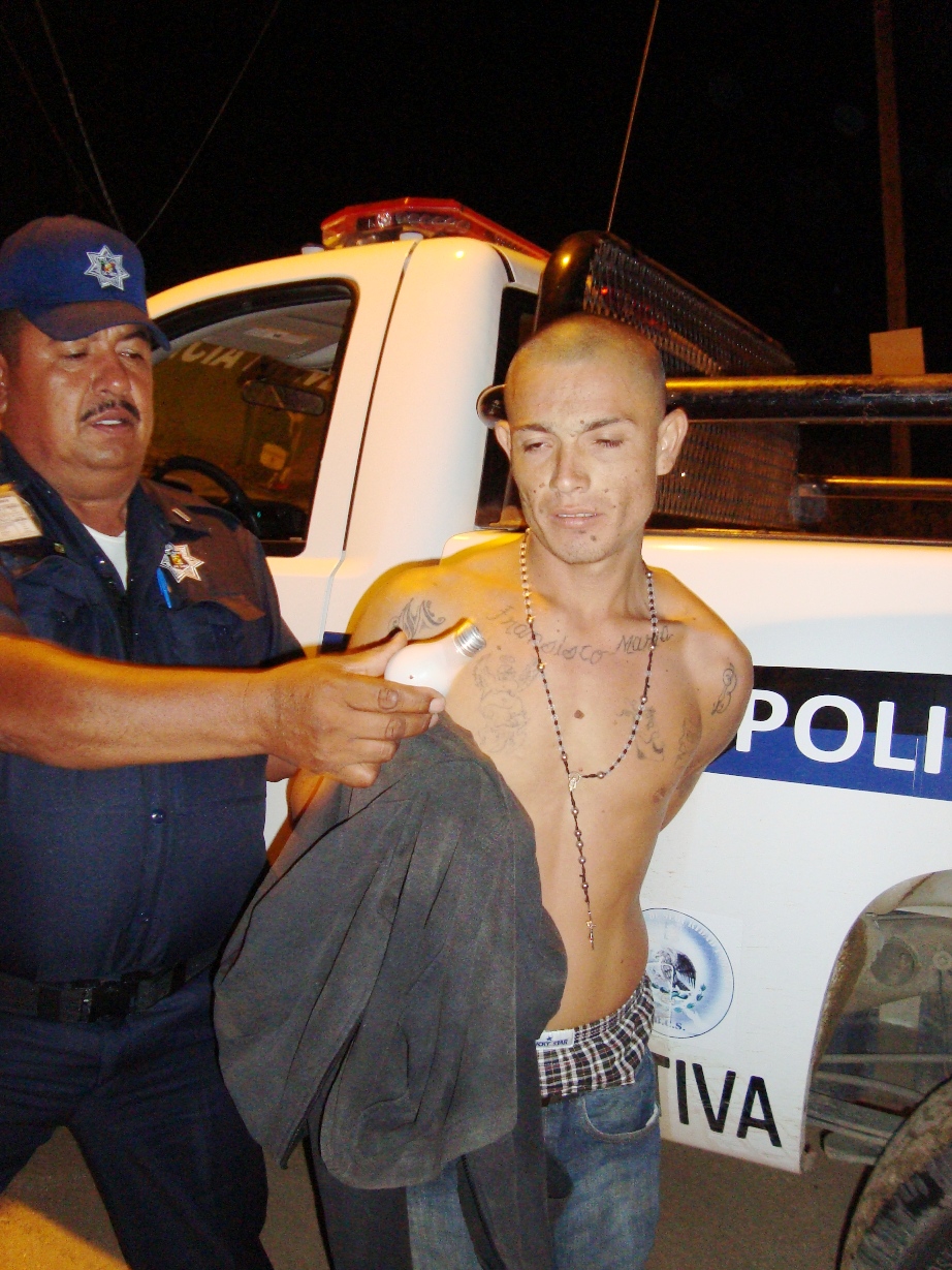 El presunto comerciante de estupefacientes se delató al tratar de abandonar a toda prisa el lugar donde se encontraba, Ignacio Zaragoza y Félix Ortega, al detectar la presencia de los agentes de la unidad oficial DST-826, que patrullaban las arterias de la colonia Matamoros.