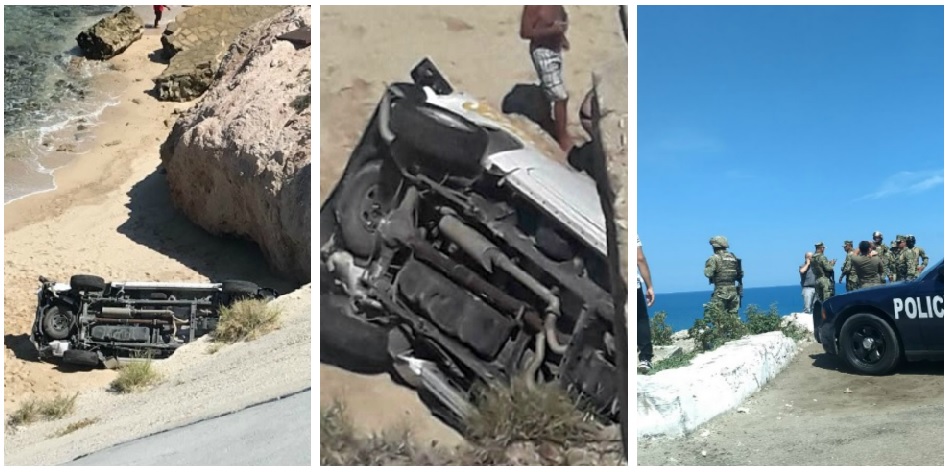 San José del Cabo (California).- Poco antes de las 4 de la tarde de este viernes, el conductor de un vehículo sedán de color gris, se fue al precipicio en el conocido como Mirador de Costa Azul ubicado en el kilómetro 29 del corredor turístico.