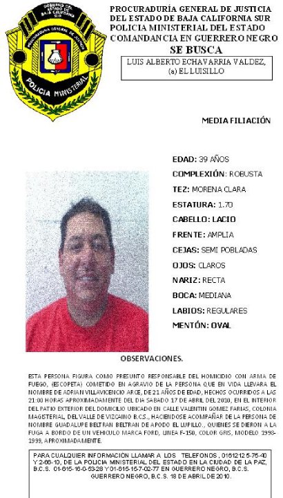Guerrero Negro, B.C.S.- Ya le fue levantado el arraigo a José Guadalupe Beltrán Beltrán, quien es presunto responsable de haber causado la muerte a Adrián Villavicencio Arce la madrugada del lunes 17 de mayo, luego de que se liaron a golpes en la población de Vizcaíno.