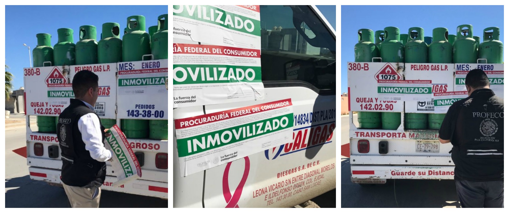 Durante una revisión sorpresiva, una brigada de la Procuraduría Federal del Consumidor que transitaba por colonias de Cabo San Lucas, tuvo a la vista un camión de la empresa Cali Gas que estaba ofertando el producto.