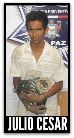La Paz, B.C.S.- No cesan los robos del cableado en la ciudad y ayer a las 3 y media de la tarde fue sorprendido un sujeto que jalaba la instalación eléctrica del alumbrado público en las calles de Ocampo e Isabel la Católica.