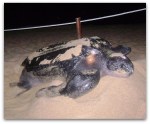 El pasado lunes a las 3 de la madrugada, durante el recorrido de vigilancia Ernesto Nery (técnico del programa municipal para protección de la tortuga marina) y la estudiante Myriah Cornell de la Universidad de Duke, tuvieron la oportunidad de encontrarse con una tortuga laúd de aproximadamente 1.80 mts. de longitud y unos 700 kg de peso. Con la salida de la primera tortuga laúd de la temporada y con su nido protegido, damos inicio a la temporada de anidación de la especie de tortuga marina más grande del mundo. (ver foto).
