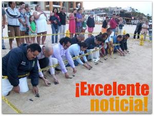 Estamos muy contentos pues por una temporada más contaremos con la presencia de esta especie en Los Cabos, desafortunadamente desde el año 2000 y en cada temporada que pasa, se protegen menos nidos, la temporada pasada apenas y se alcanzo el número de 26 nidos protegidos. Según los expertos es posible que en unos 10 años esta especie desaparezca.