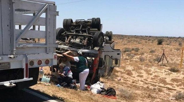 Guerrero Negro (California).- Poco después de las 8 de la mañana, el conductor de una camioneta pick up de doble cabina, perdió el control de la unidad a la altura del kilómetro 197 y se volcó, cerca de la población Ejido Benito Juárez, al sur de esta localidad.